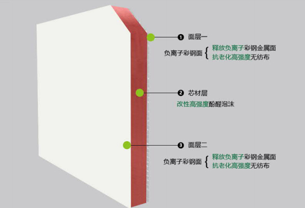 风管由双面彩钢复合一体板制成,板芯采用黑色轻体硬质石墨硅防特板